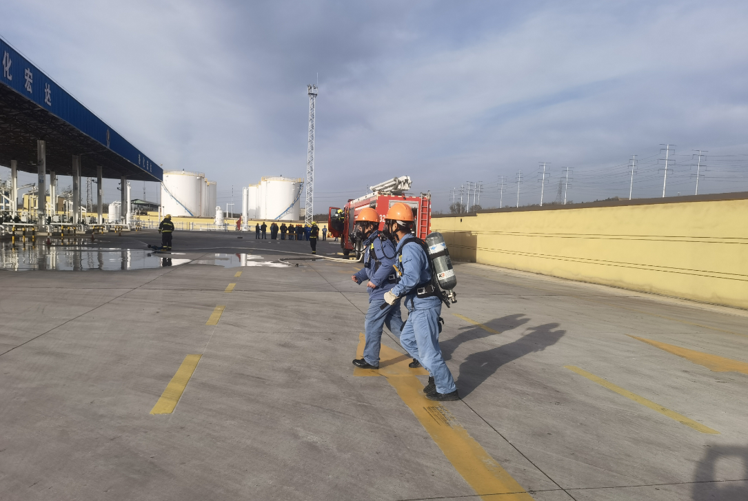 为加强关键装置、要害部位和重大危险源的安全应急管理,预防和减少生产安全事故的发生,检验和提高公司各级人员对突发事件的应急响应和处置能力,洛阳炼化宏达实业有限责任公司于2024年12月13日9:00时在油库装卸区进行突发事件综合应急演练。